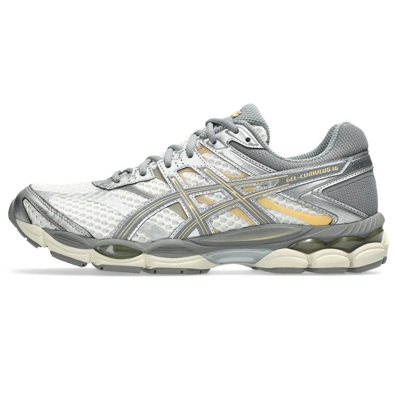 Originalmente lanzadas en 2014, los calzados GEL-CUMULUS™ 16 son conocidas por sus capacidades de amortiguación suave al correr distancias más largas.El diseño del empeine combina revestimientos de cuero sintético brillante, paneles sin costuras y capas de malla abiertas. Esta fusión de materiales crea una estética técnica que es típica de los calzados de running avanzadas de la década de 2010.Las propiedades de amortiguación suave de los calzados se mantienen intactas. Cuenta con dos insertos de tecnología GEL™, tecnología FLUIDRIDE™ y tecnología FLYTEFOAM™ para proporcionar una sensación de comodidad en la planta del pie.