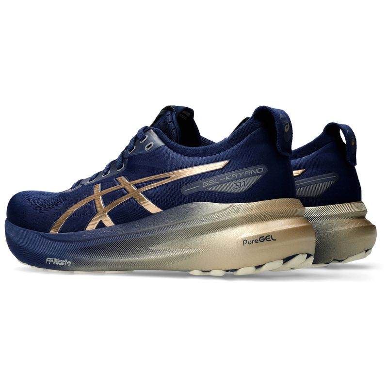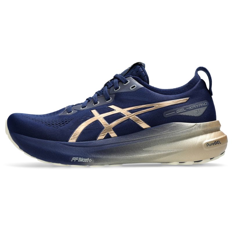 Mueve tu mente con la estabilidad adaptativa y la comodidad superior del calzado GEL-KAYANO™ 31 PLATINUM. Esta colección está inspirada en las técnicas de teñido Shibori y presenta detalles metálicos. Está diseñado para destacar y hacerse notar. El 4D GUIDANCE SYSTEM™ ayuda a proporcionar estabilidad adaptativa. Esto le ayuda a experimentar una zancada con más apoyo y equilibrada durante su entrenamiento a distancia. Su entresuela implementa la amortiguación FF BLAST™ PLUS ECO y la tecnología PureGEL™. Estas características hacen que tu entrenamiento a distancia sea suave y cómodo.