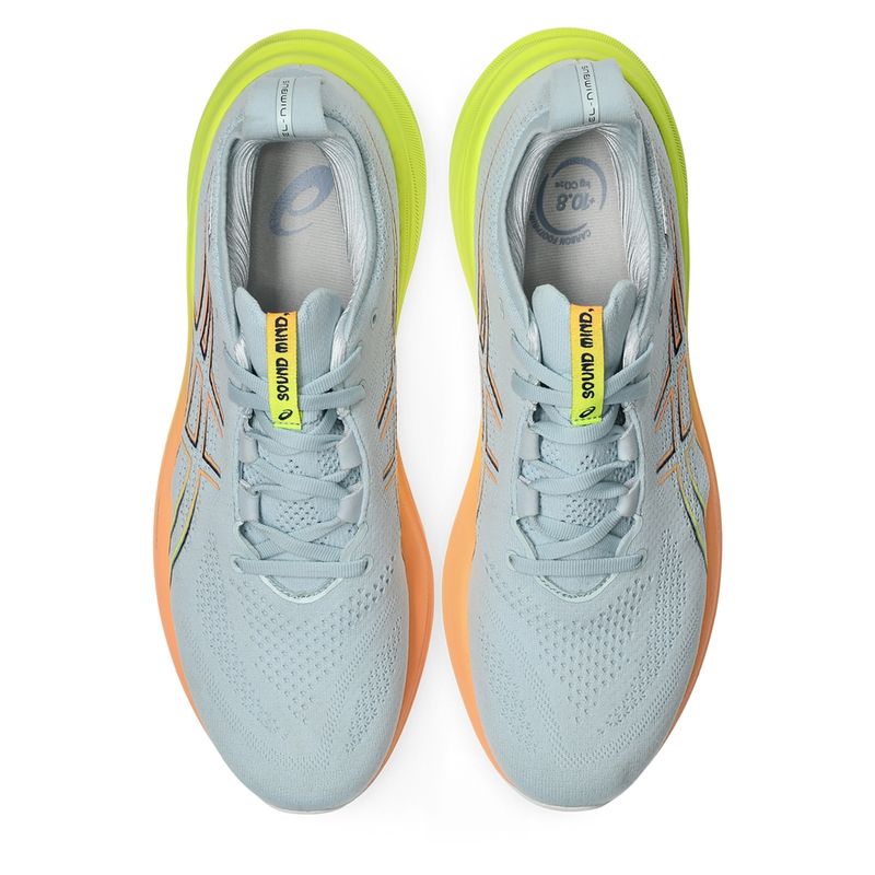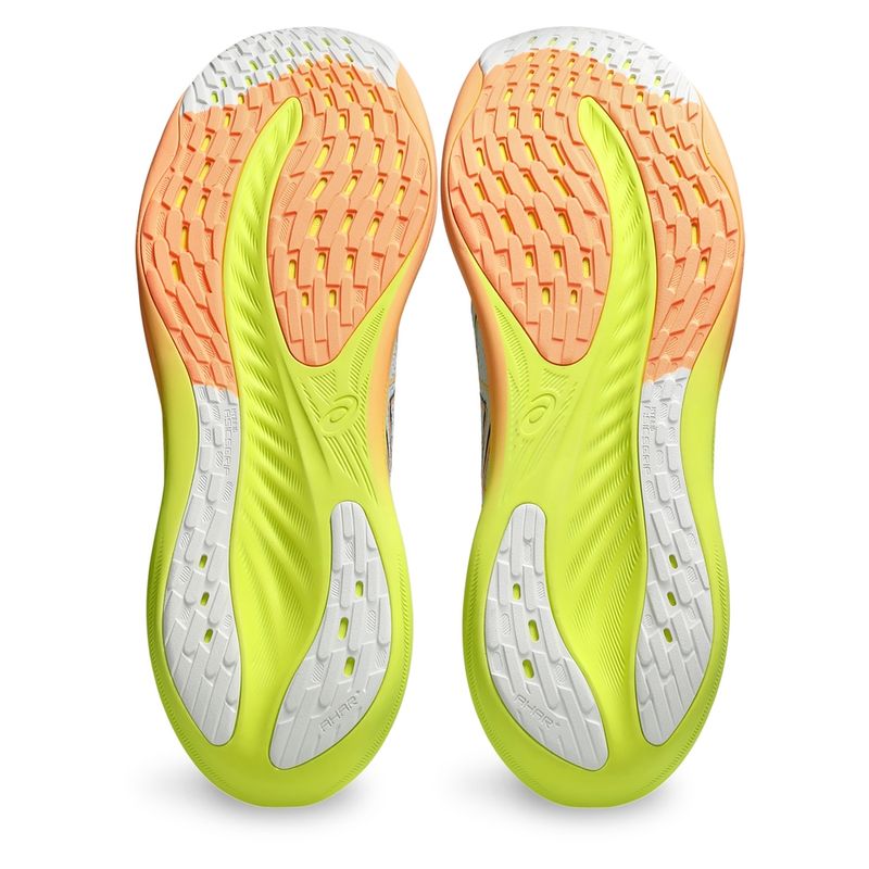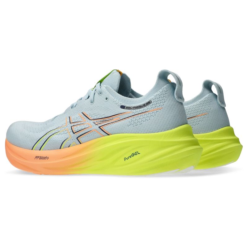 Las suaves propiedades de amortiguación del calzado GEL-NIMBUS™ 26 PARIS te ayudan a sentirte como si estuvieras aterrizando en las nubes. Este diseño se ha renovado para ayudar a crear una experiencia de carrera más suave y fluida. Su combinación de colores está inspirada en "la ciudad de las luces" y sus tonos energizantes. Una parte superior tejida suave envuelve cómodamente su pie mientras brinda ventilación avanzada. Además, la lengüeta y el cuello tejidos ayudan a brindar una sensación suave y de apoyo. Al utilizar la amortiguación FF BLAST™ PLUS ECO, este calzado crea una experiencia de amortiguación más ligera y suave. La suela HYBRID ASICSGRIP™ combina caucho ASICSGRIP™ y materiales AHARPLUS™ para ayudar a proporcionar un agarre avanzado para varios terrenos y una durabilidad avanzada.