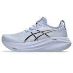 El calzado de running GELNIMBUS 27 se ha diseñado para sentir la máxima comodidad al correr y encontrar esa paz interior que te aporta el running. Y gracias a su amortiguación máxima, superior a las anteriores, puedes correr más lejos con total comodidad. La combinación de la tecnología PureGELy nuestra amortiguación superior FF BLAST PLUS ECO te garantiza una comodidad increíble cada vez que salgas a correr. Además, presenta un nuevo diseño de la parte superior y el cuello que ofrece un ajuste cómodo sin precedentes. ¿Qué hace que El calzado de running GELNIMBUS 27 sea tan cómoda? La innovadora tecnología PureGELen el retropié, con mejor absorción de impactos, reduce la presión en las articulaciones para que puedas seguir corriendo cómodamente. La espuma FF BLAST PLUS ECO garantiza un aterrizaje más suave y una amortiguación superior para que te sientas a gusto mientras corres. La parte superior transpirable y el diseño del cuello ofrecen un ajuste único que proporciona la máxima comodidad.
