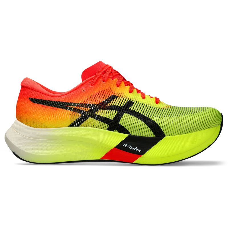 El calzado de running METASPEED™ EDGE 3 se ha diseñado para corredores con cadencia que empiezan la carrera a buen ritmo y acaban más rápido. Este calzado mejora la velocidad de los deportistas, ya que aumenta el número de zancadas y se conserva energía en cada paso. Gracias a la espuma dinámica de la mediasuela y a la placa de propulsión de fibra de carbono, este calzado mantiene la energía con el mismo ritmo durante las últimas etapas de la carrera.Esta nueva versión también ayuda a superar la barrera de los 30 km con facilidad.Un modelo más ligero que incluye amortiguación FF TURBO™ PLUS. Esta tecnología mejora la compresión en los pies y el ahorro de energía.